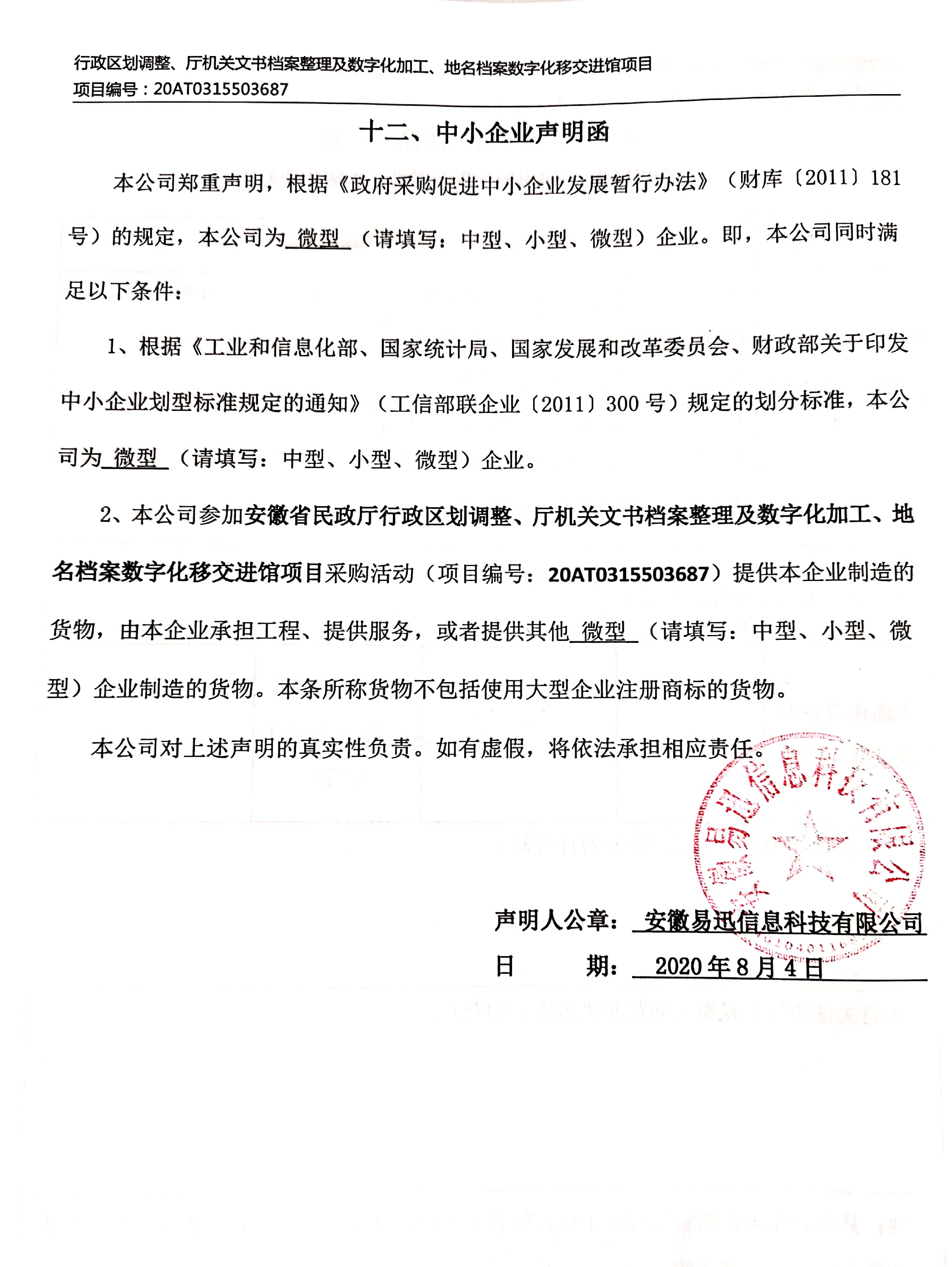 安徽省民政厅行政区划调整、厅机关文书档案整理及数字化加工、地名档案数字化移交进馆项目的潜在供应商应在信e采电子交易系统(www.ahbidding.com)获取采购文件,并于 2020年8月4日14点30分(北京时间)前提交响应文件。